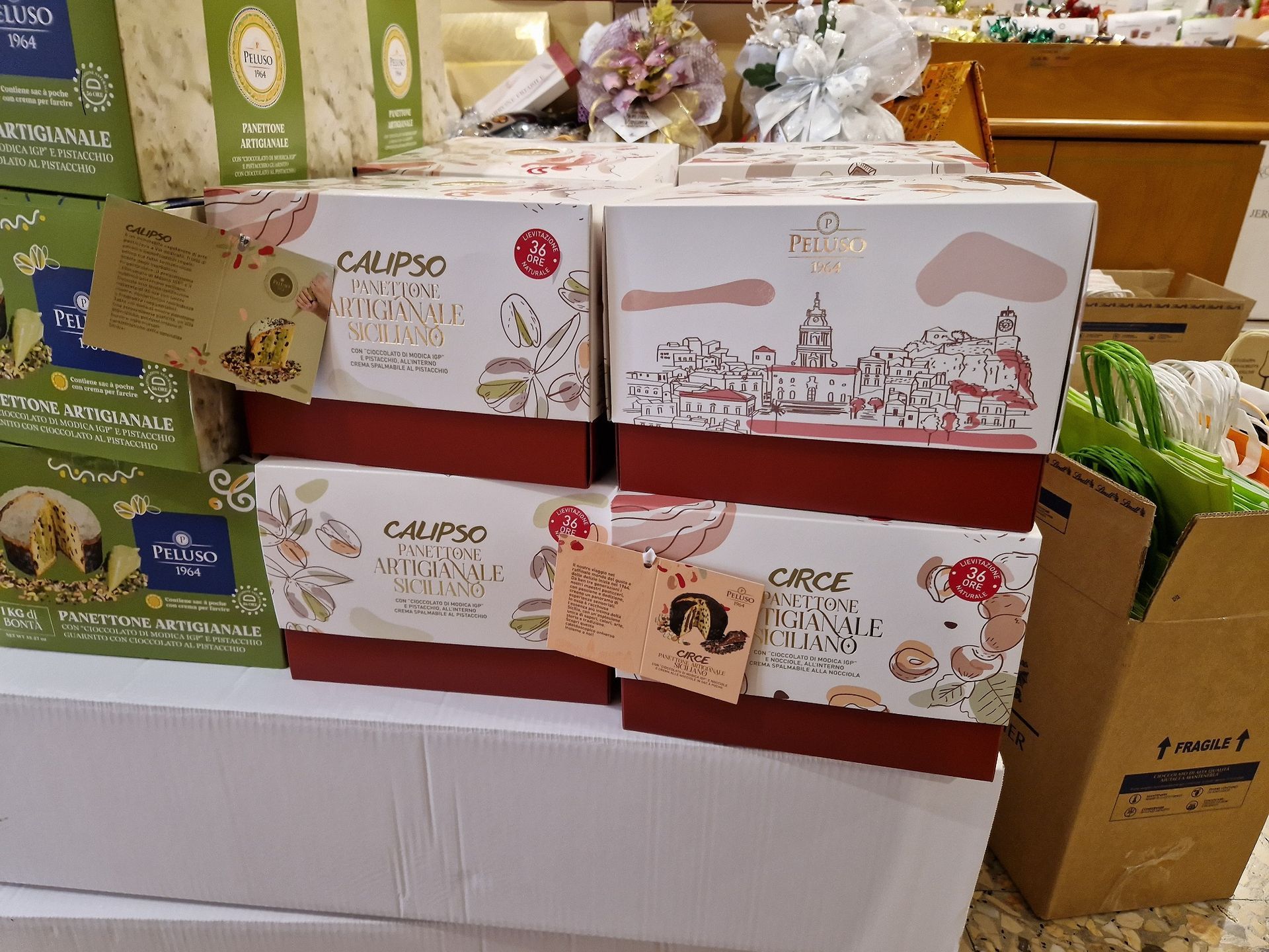 e pistacchio e panettoni artigianali con canditi di arancia di Sicilia, cedri diamante e uvetta Australiana.
