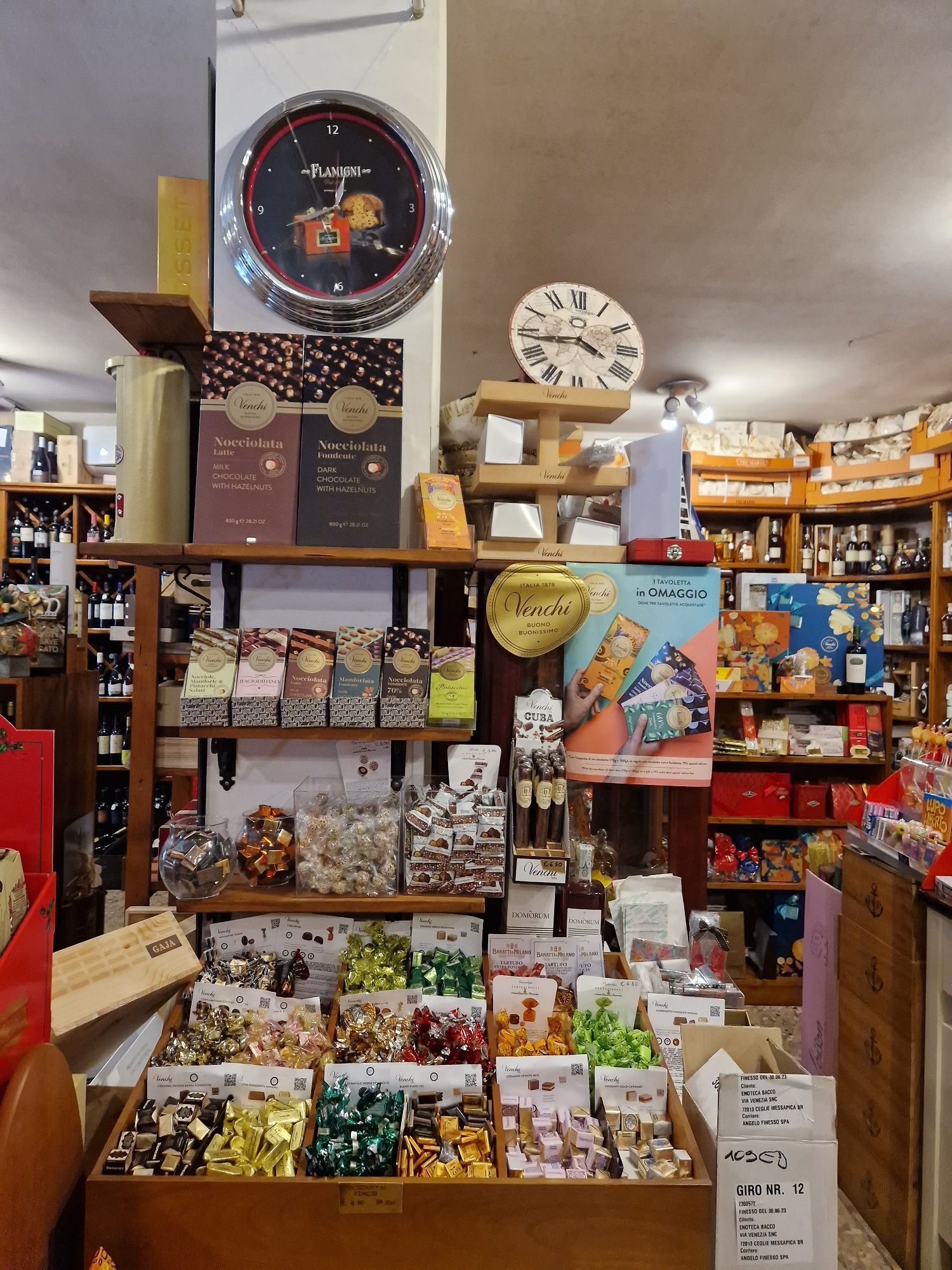 Accanto alla grande scelta di vini, sugli scaffali dell'Enoteca Bacco è presente anche un notevole assortimento di prodotti che spazia dai dolciumi assortiti alle barrette di cioccolato; questo perché negli ultimi anni, nella sommellerie, e soprattutto tra gli appassionati, si è fatta strada una nuova tendenza: accostare il cioccolato al vino. I migliori risultati in questo senso si ottengono con due speciali vini italiani: l’ Aleatico di Puglia e il Barolo Chinato.